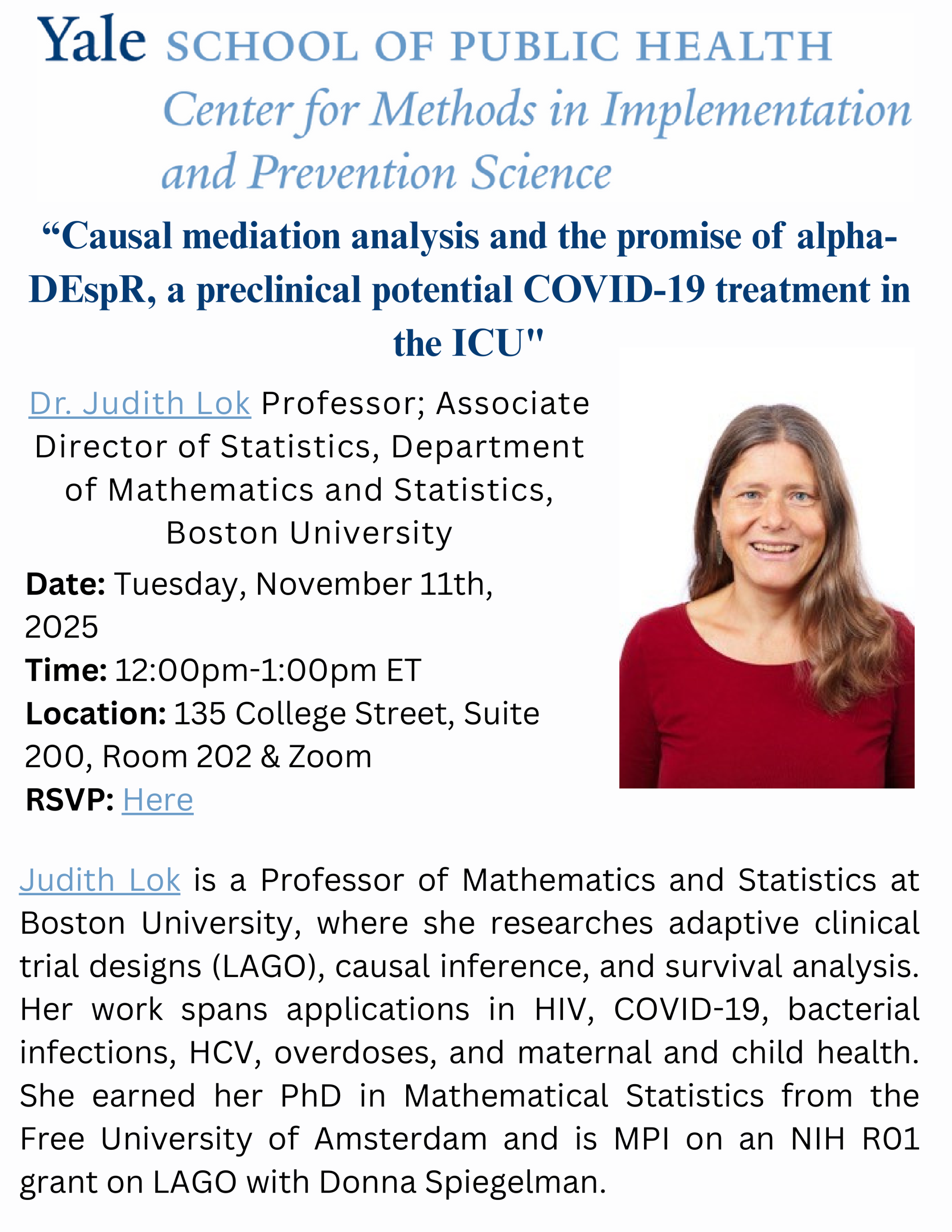 CMIPS Seminar: Judith Lok "Causal mediation analysis and the promise of alpha-DEspR, a preclinical potential COVID-19 treatment in the ICU"