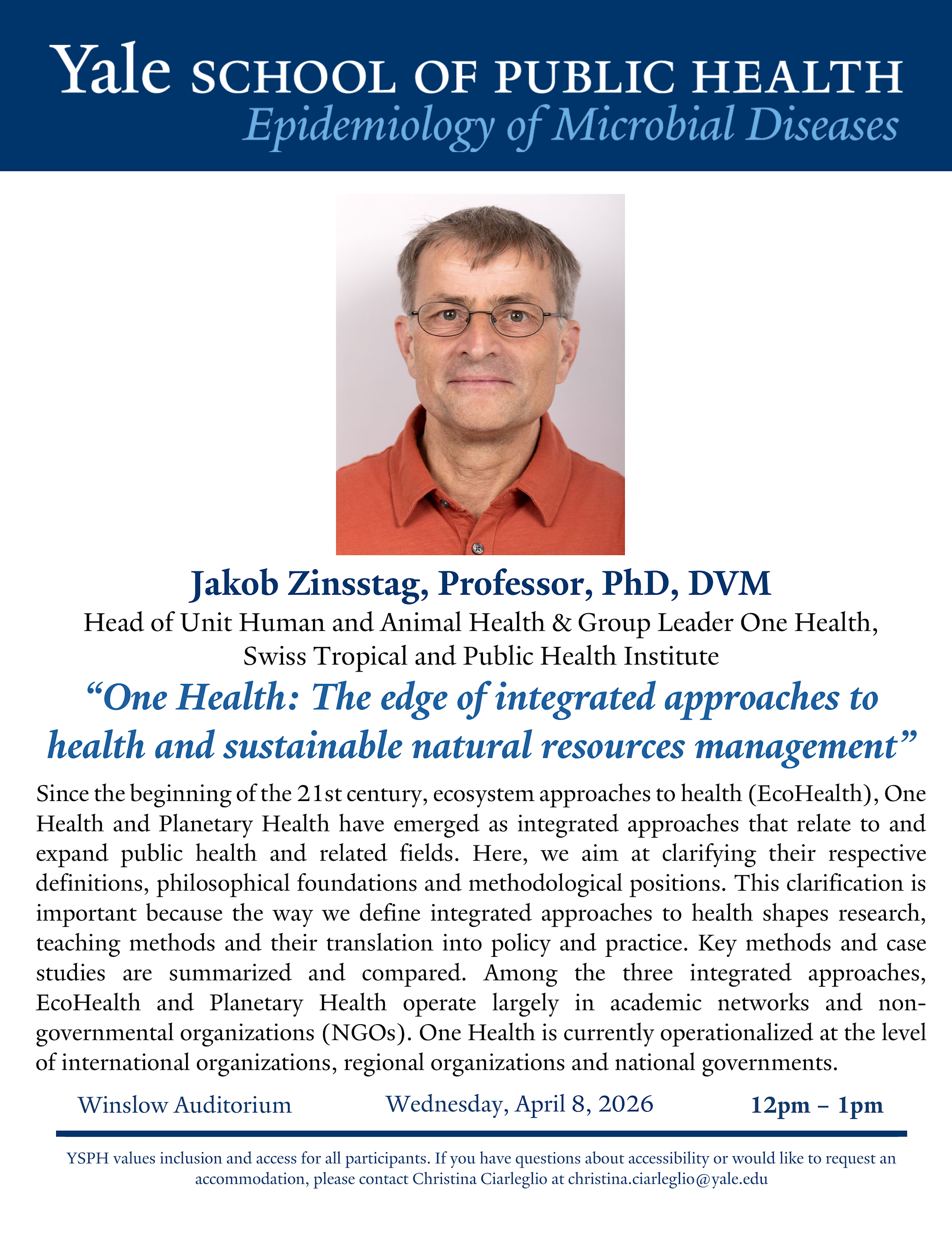 If you have questions about accessibility or would like to request an accommodation, please contact Christina Ciarleglio at christina.ciarleglio@yale.edu