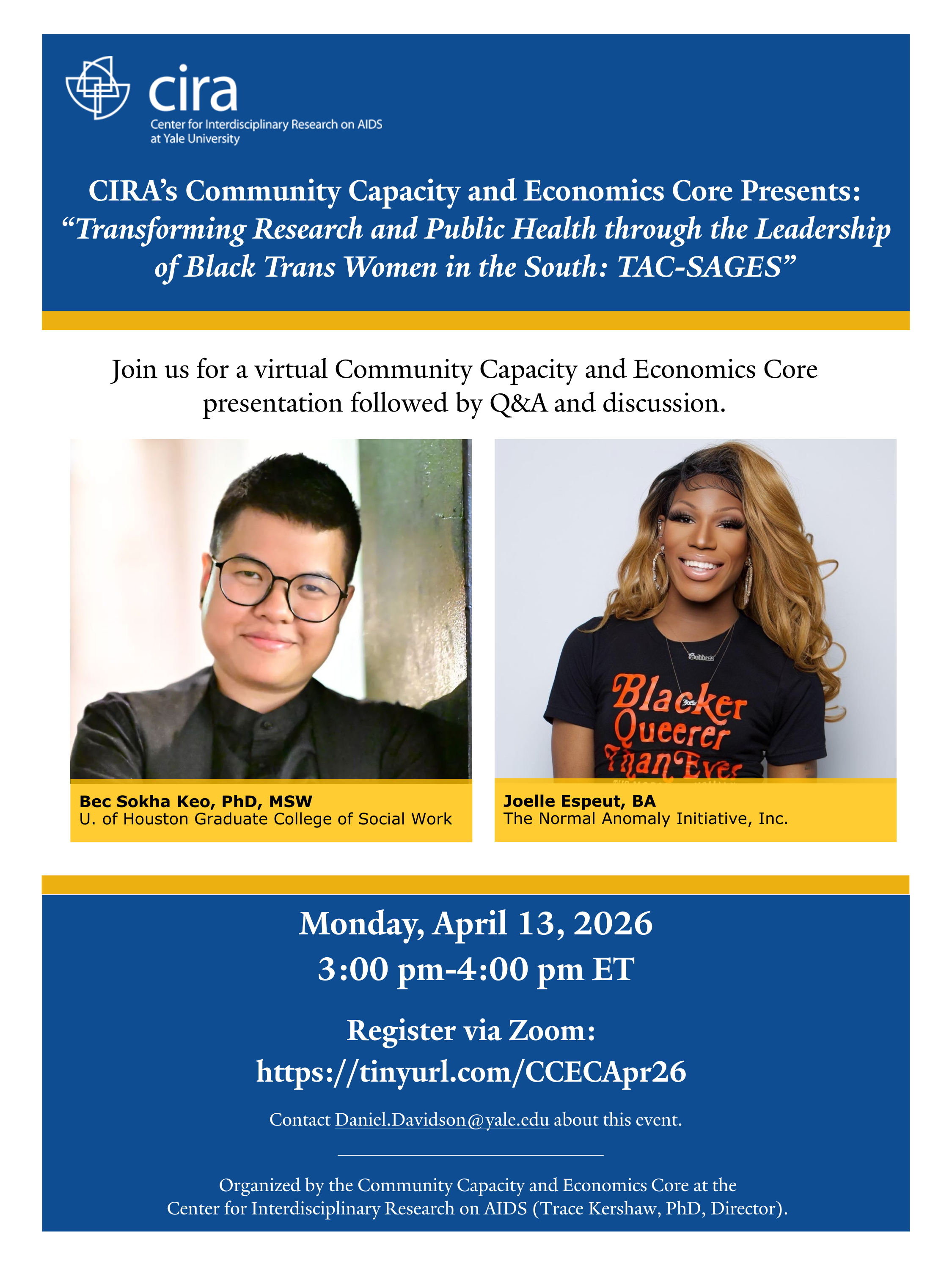 CIRA's Community Capacity and Economics Core Presents: "Transforming Research and Public Health through the Leadership of Black Trans Women in the South: TAC-SAGES"