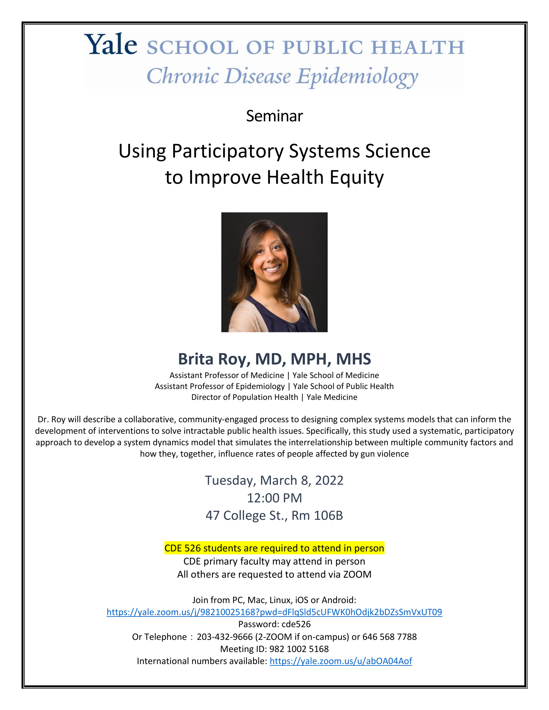 YSPH/CDE 526 Seminar in Chronic Disease Epidemiology: "Using Participatory Systems Science to Improve Health Equity"