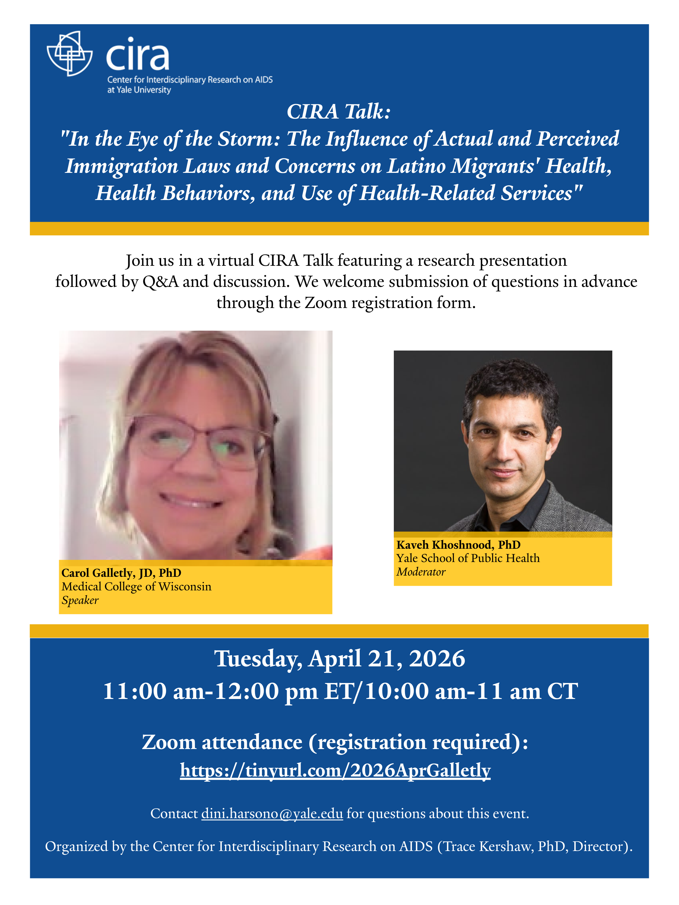 CIRA Talk: "In the Eye of the Storm: The Influence of Actual and Perceived Immigration Laws and Concerns on Latino Migrants' Health, Health Behaviors, and Use of Health-Related Services"