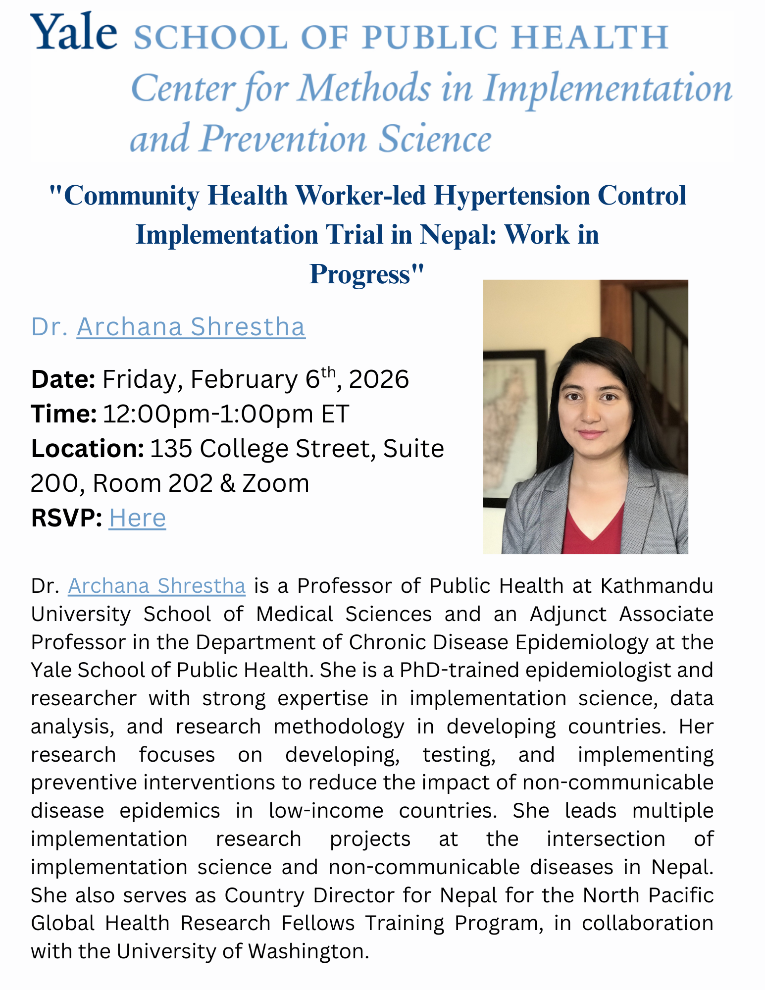 CMIPS Seminar: Archana Shrestha "Community Health Worker-led Hypertension Control Implementation Trial in Nepal: Work in Progress"