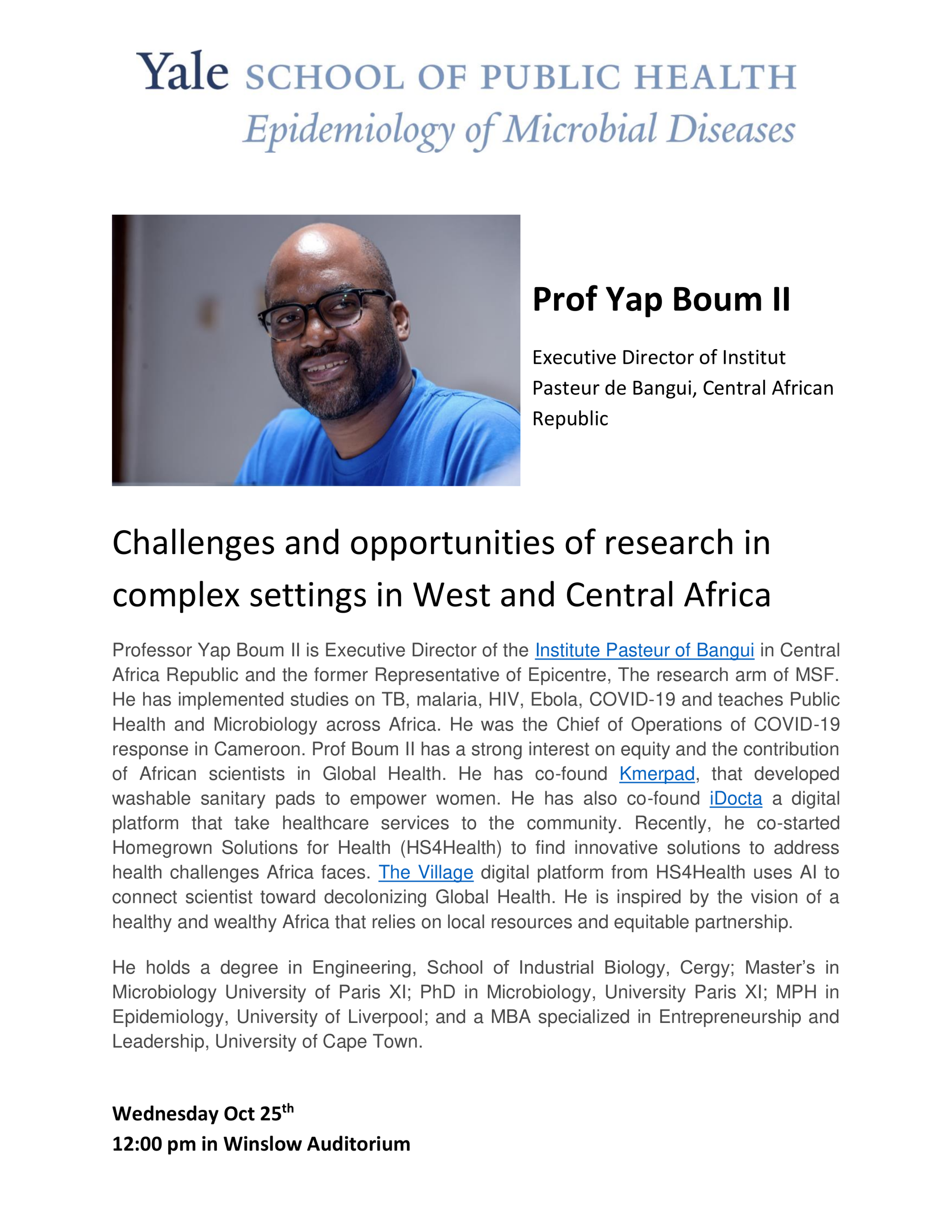 EMD Seminar Series: Yap Boum II, "Challenges and opportunities of research in complex settings in West and Central Africa"