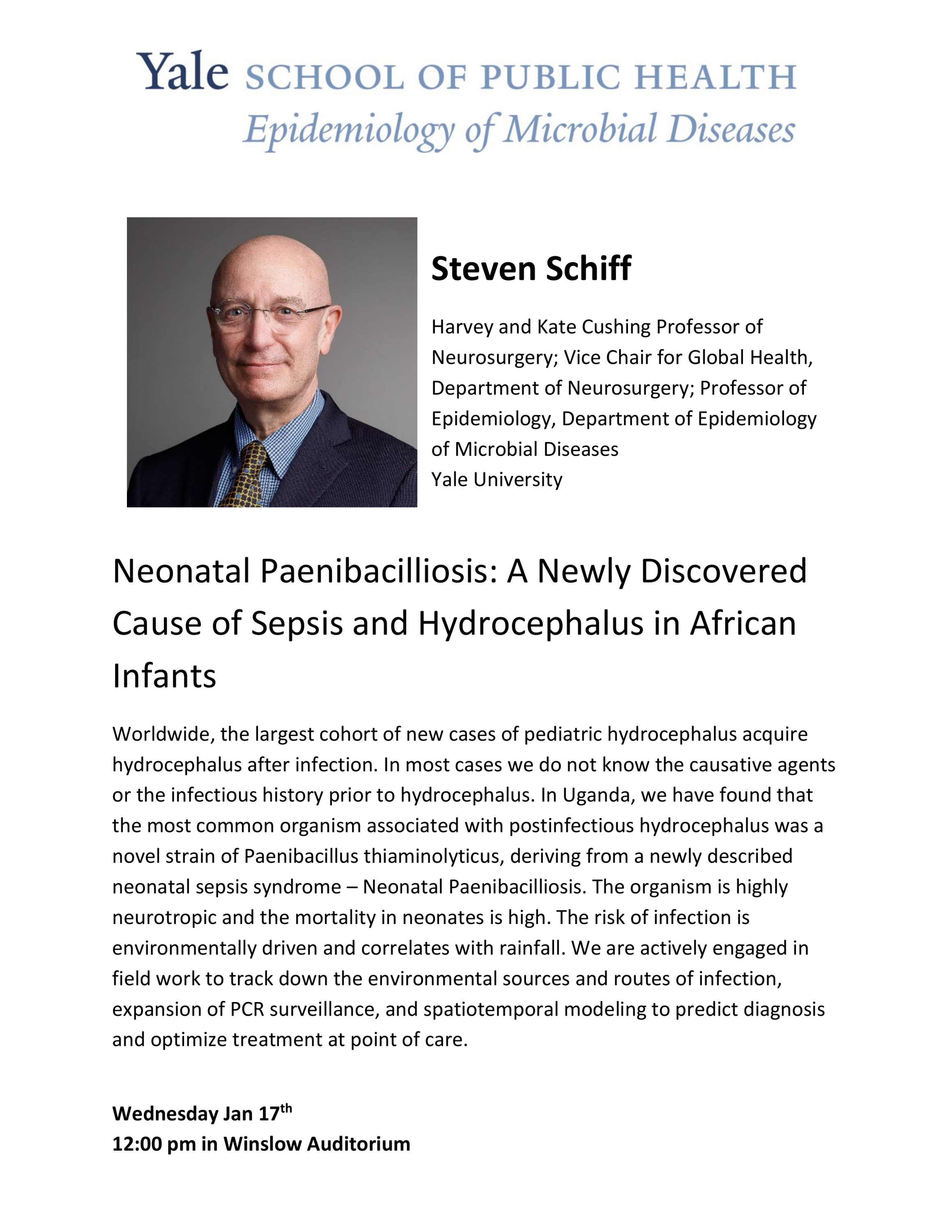 EMD Seminar Series: Steven Schiff, "Neonatal Paenibacilliosis: A Newly Discovered Cause of Sepsis and Hydrocephalus in African Infants"