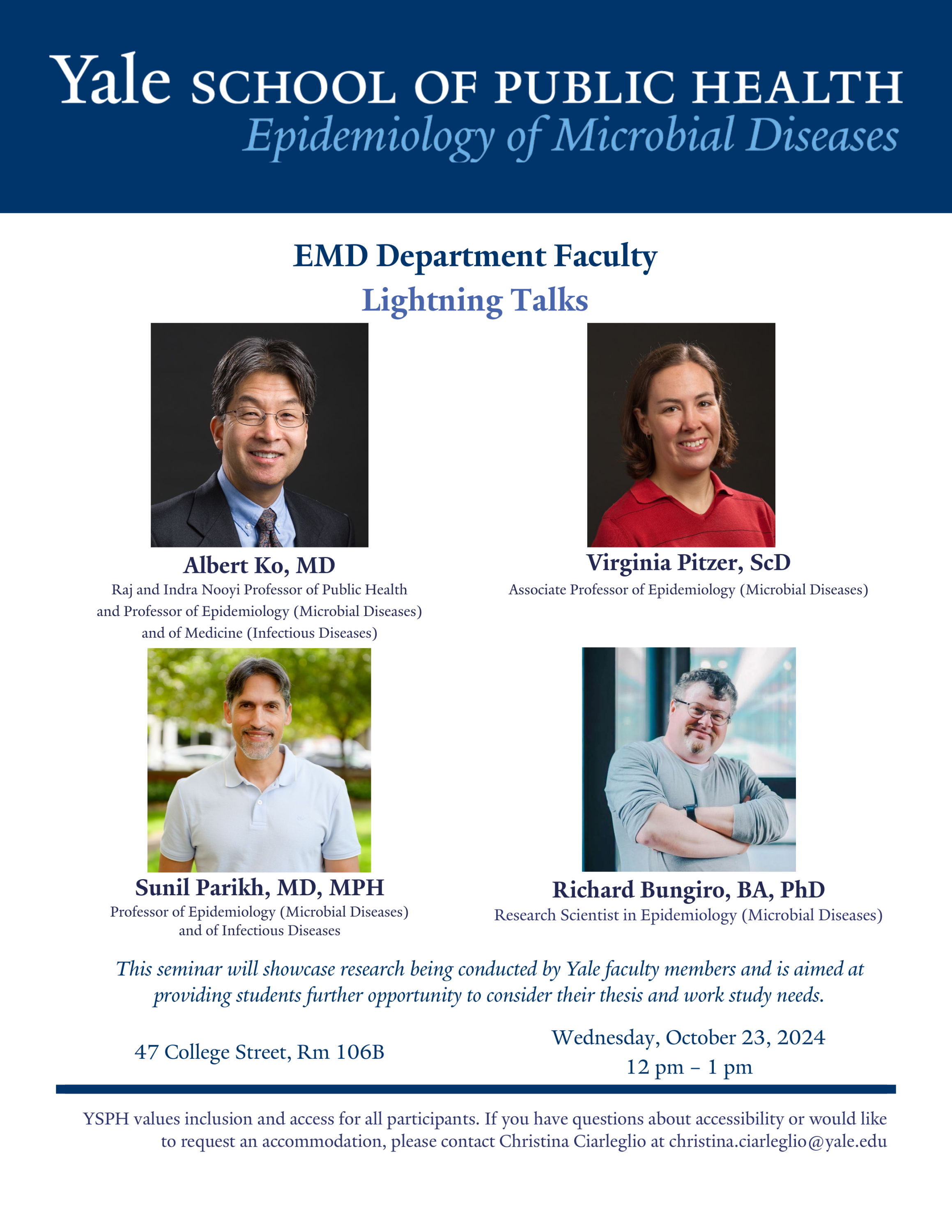 If you have questions about accessibility or would like to request an accommodation, please contact Christina Ciarleglio at christina.ciarleglio@yale.edu.