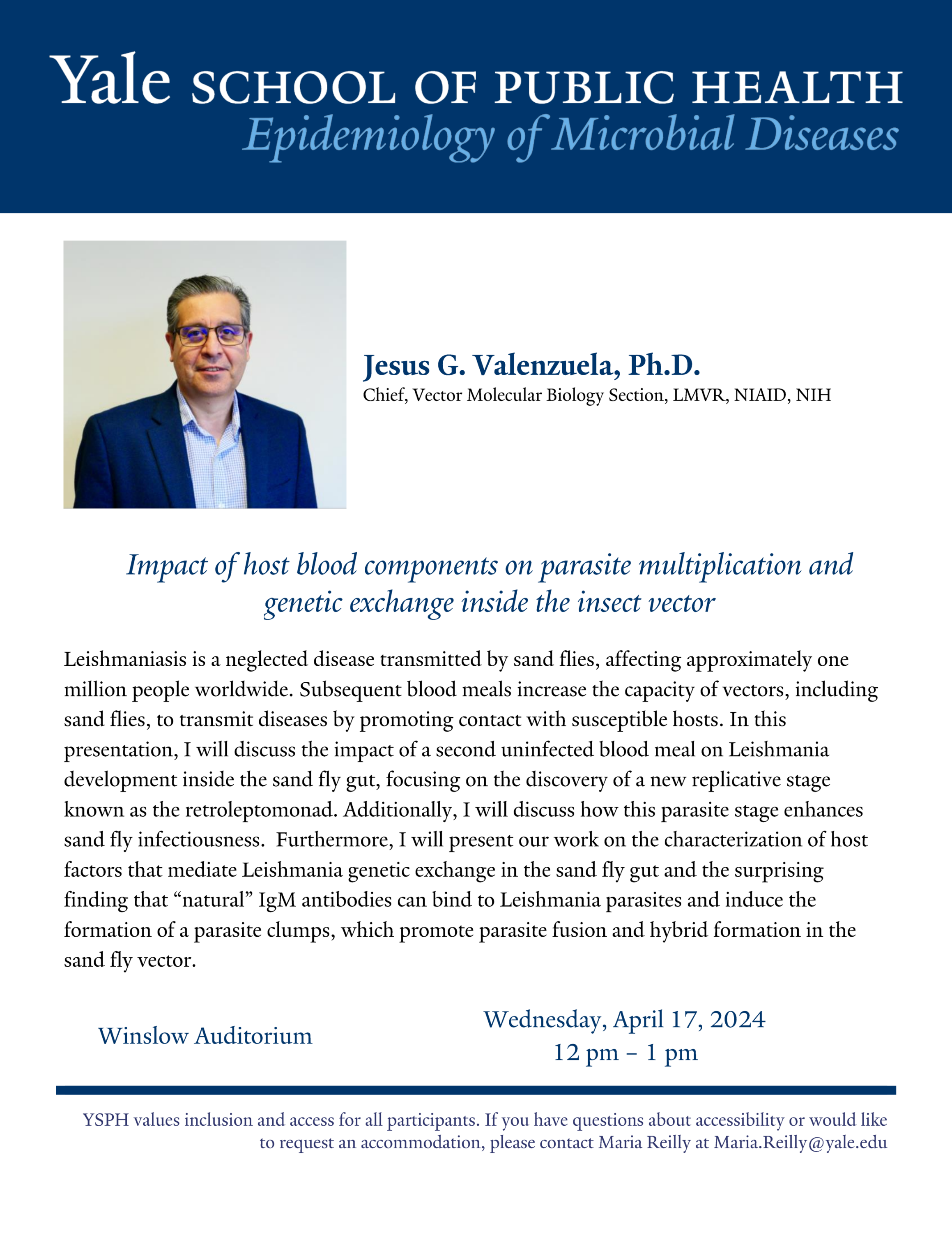 EMD Seminar Series: Jesus Valenzuela, "Impact of host blood components on parasite multiplication and genetic exchange inside the insect vector"
