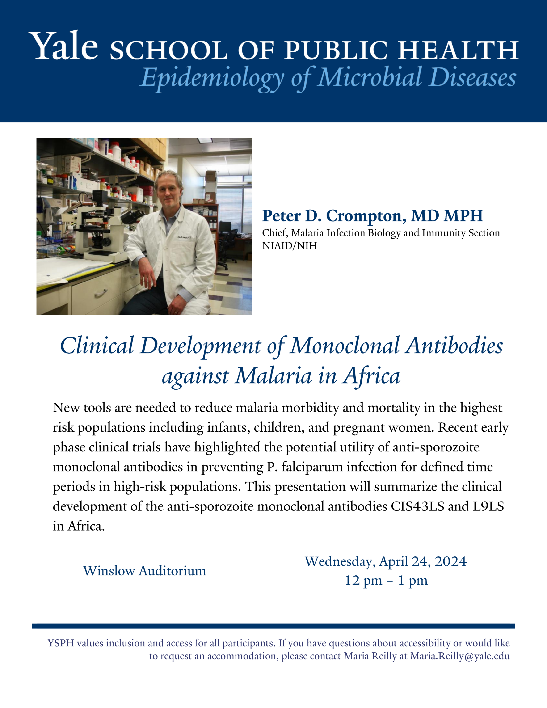 EMD Malaria Day Seminar: Peter Crompton, "Clinical Development of Monoclonal Antibodies against Malaria in Africa"