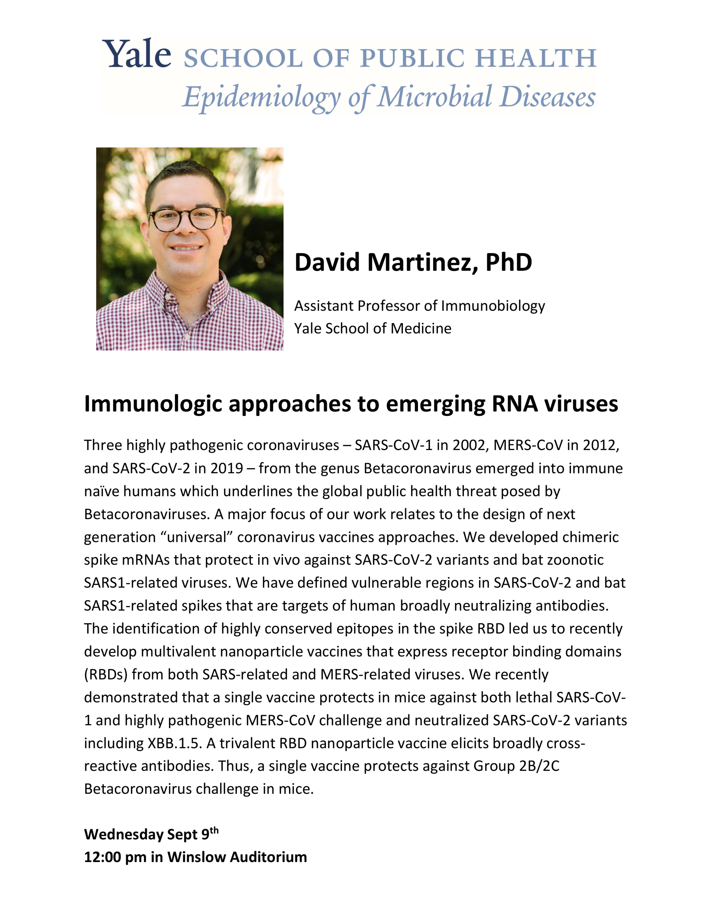 EMD Seminar Series: David Martinez, "Immunologic approaches to emerging RNA viruses"
