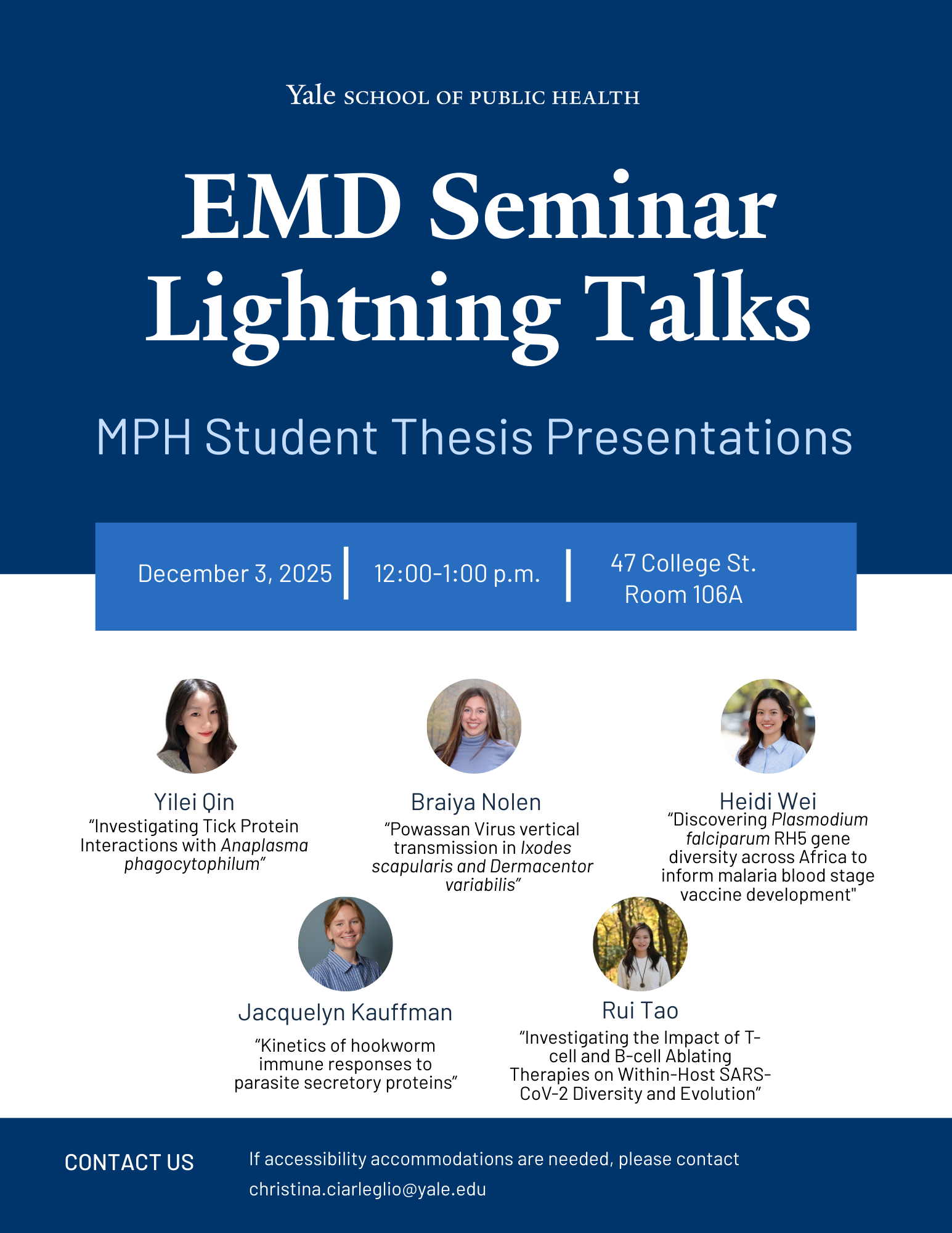 If you have questions about accessibility or would like to request an accommodation, please contact Christina Ciarleglio at christina.ciarleglio@yale.edu