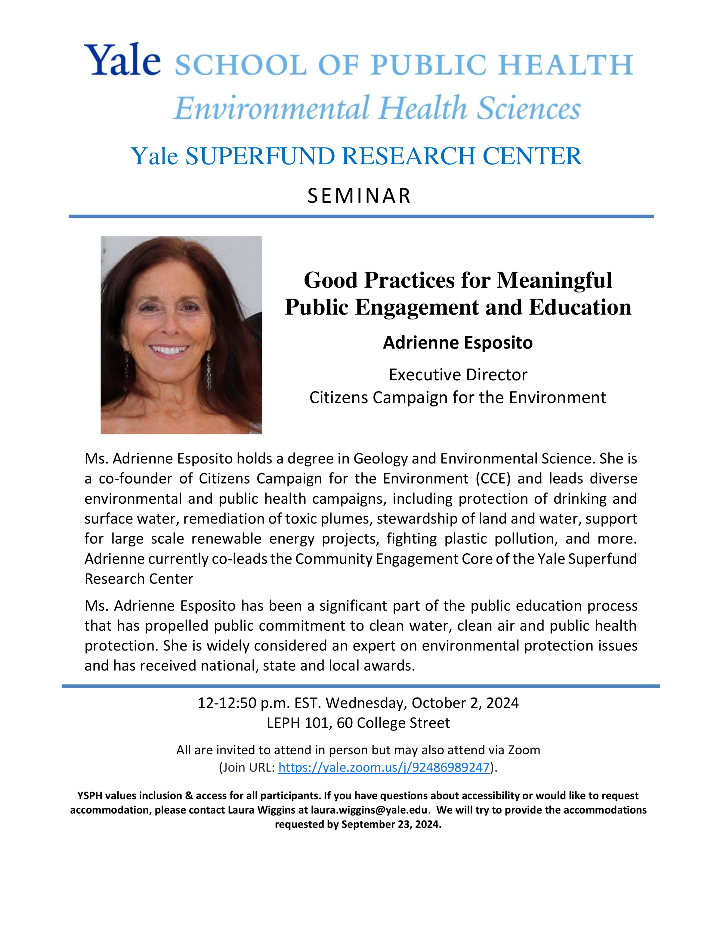 Environmental Health Sciences Seminar: "Good Practices for Meaningful Public Engagement and Education