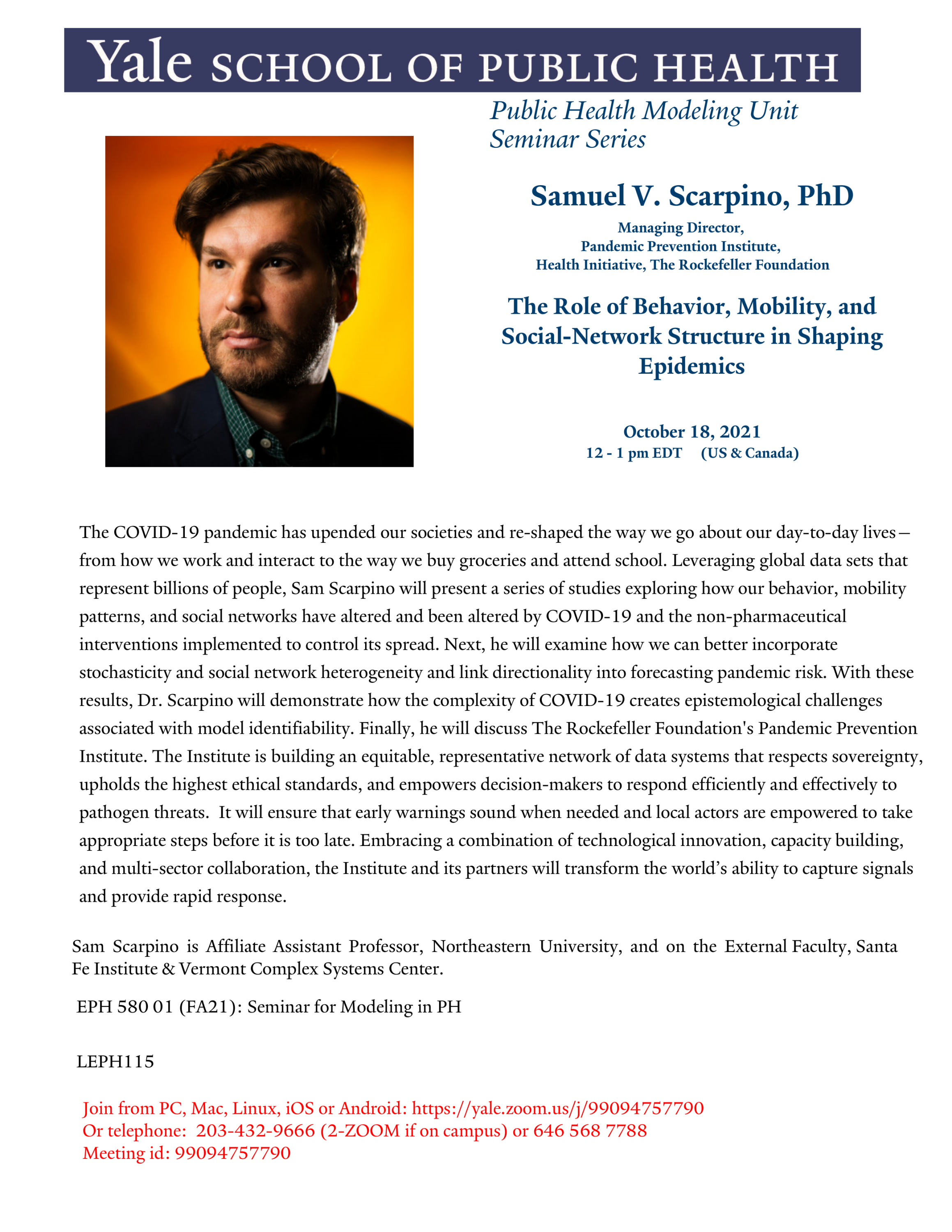 Modeling Unit Seminar: The Role of Behavior, Mobility & Social Network Structure in Shaping Epidemics