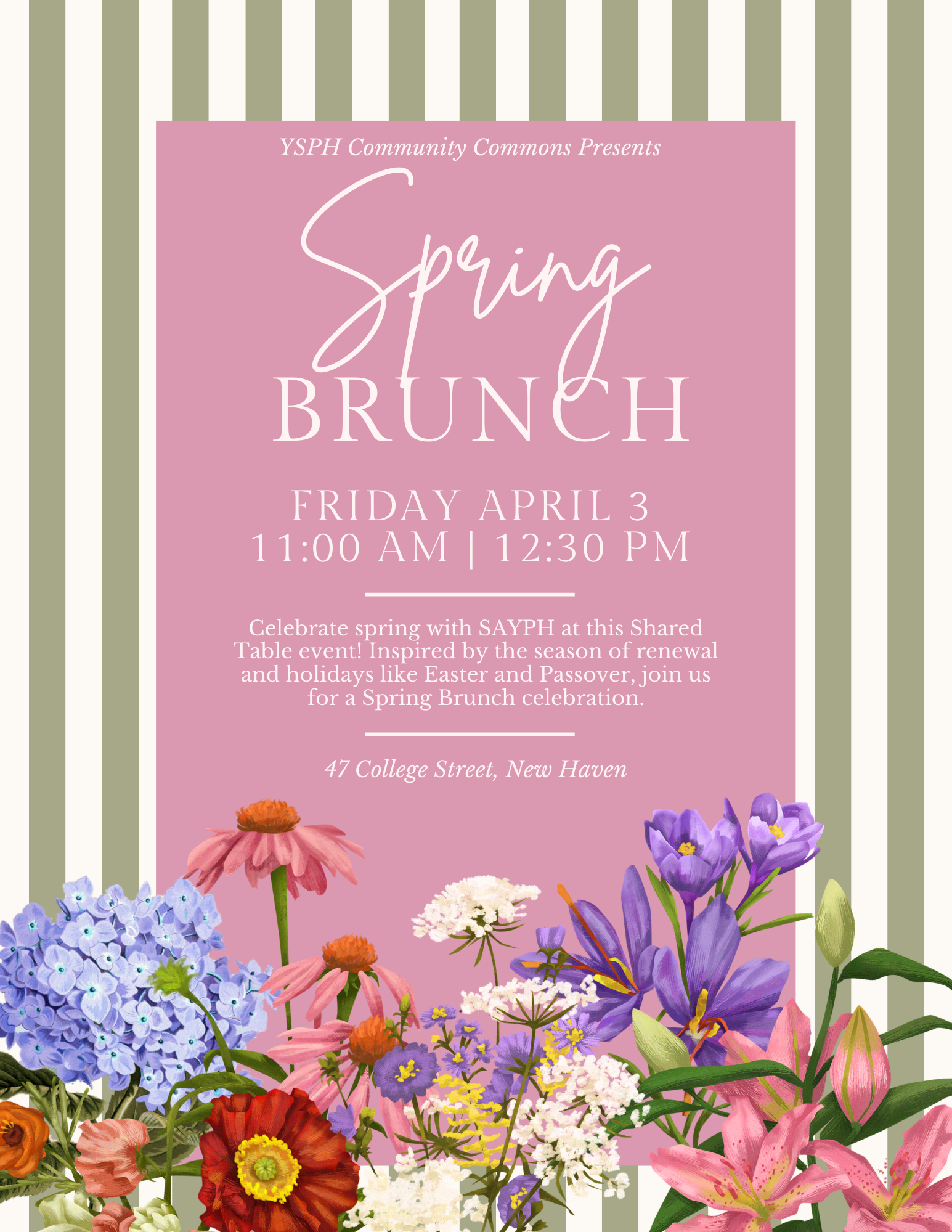 Celebrate spring with SAYPH at our third Shared Table event of the semester! Inspired by the season of renewal and holidays like Easter and Passover, join us for a Spring Brunch celebration.