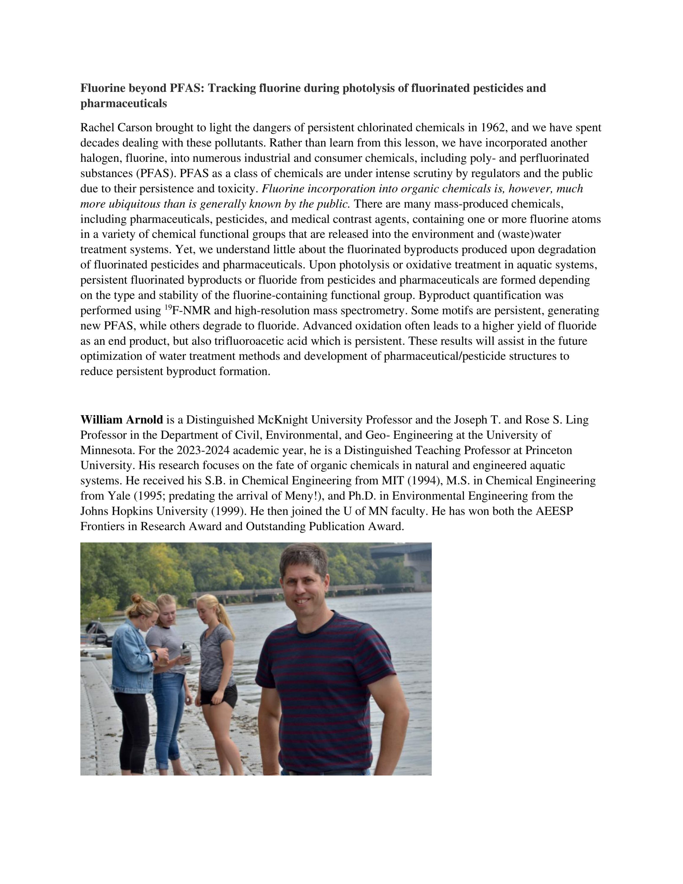 William Arnold, PhDProfessor, Dept of Civil, Environmental, and Geo-Engineering