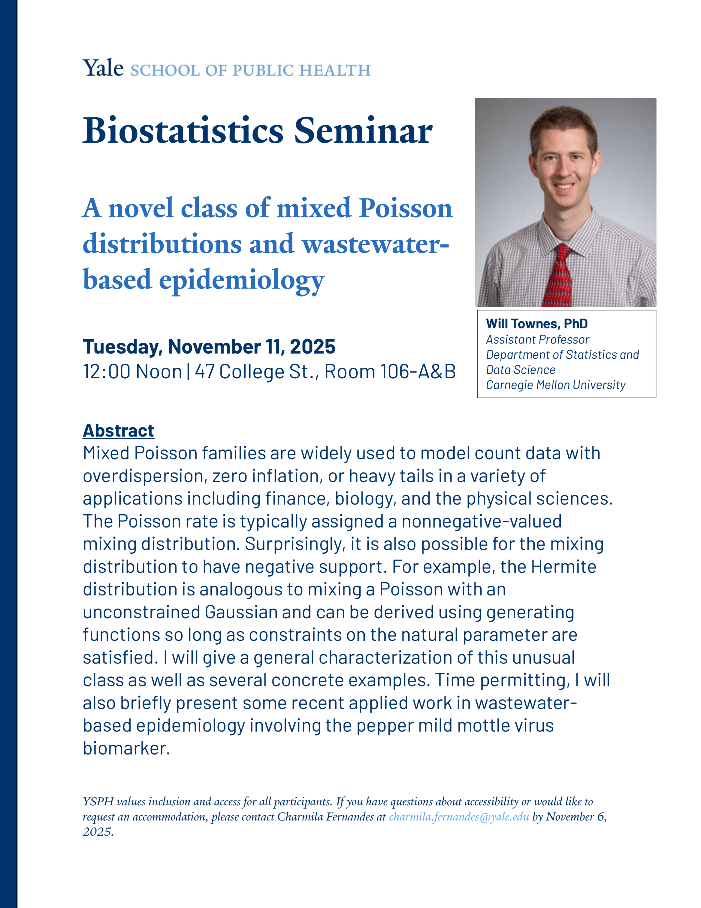 YSPH Biostatistics Seminar: “A novel class of mixed Poisson distributions and wastewater-based epidemiology"