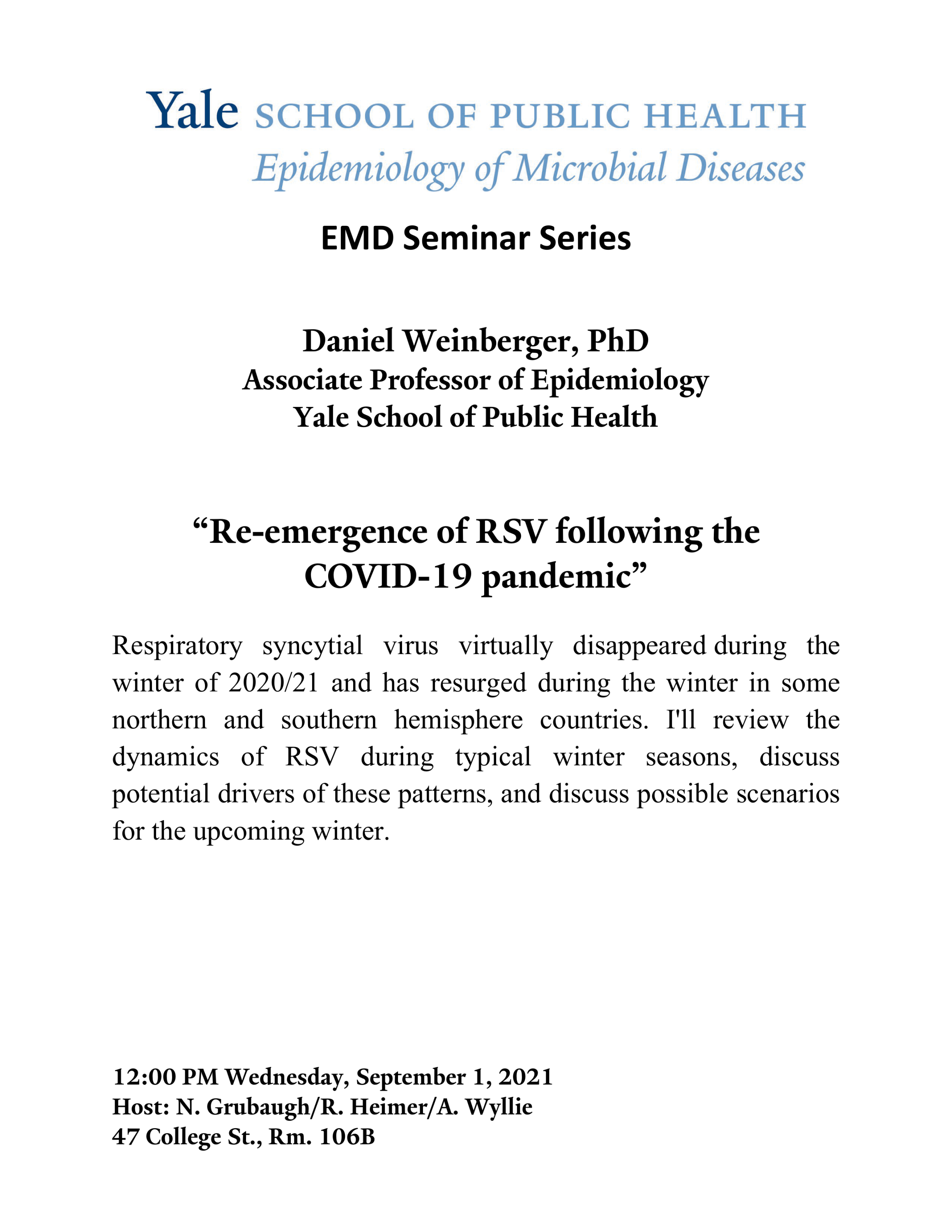 YSPH EMD Semiar Series: "Re-emergence of RSV following the COVID-19 pandemic"