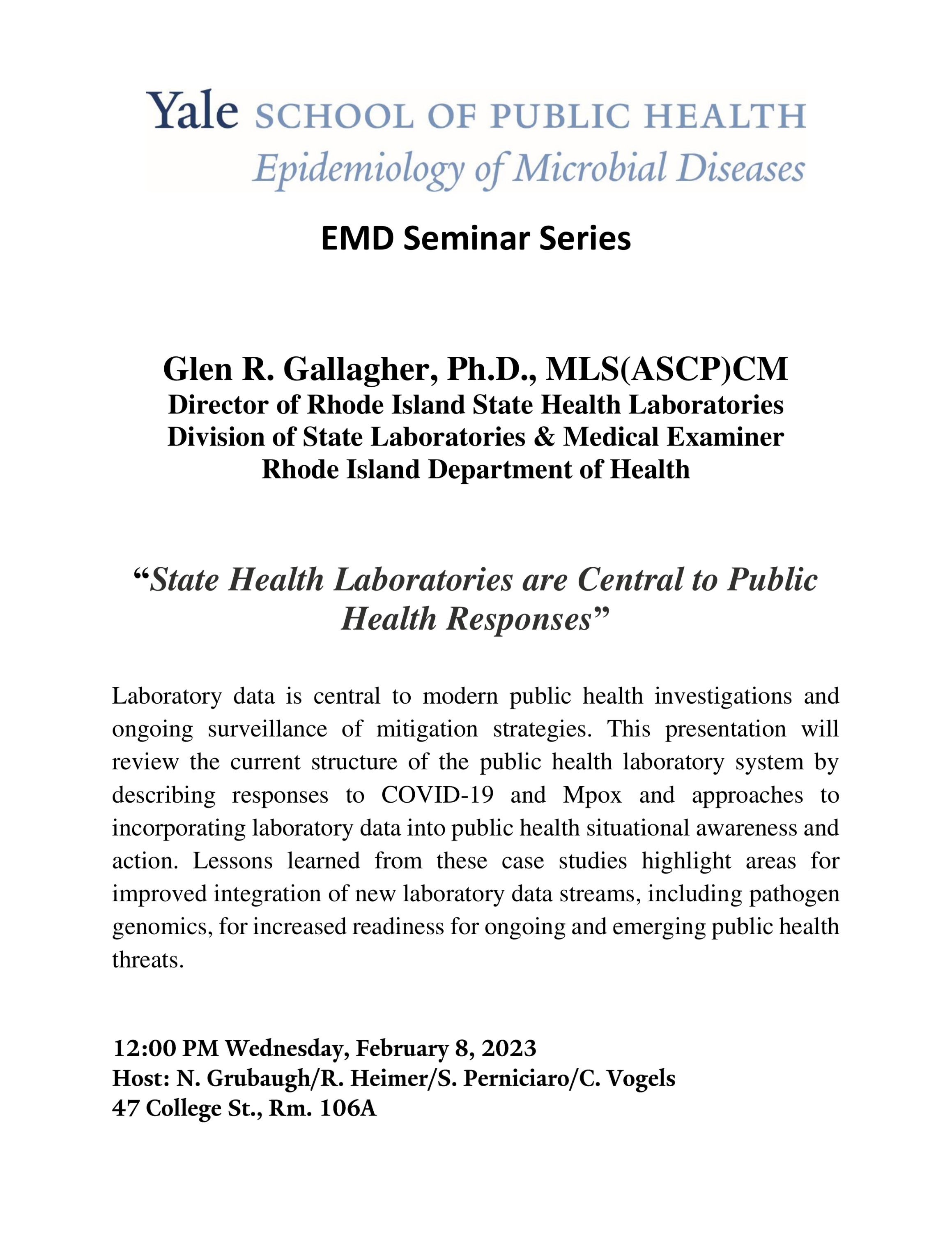YSPH EMD Seminar "State Health Laboratories are Central to Public Health Responses"
