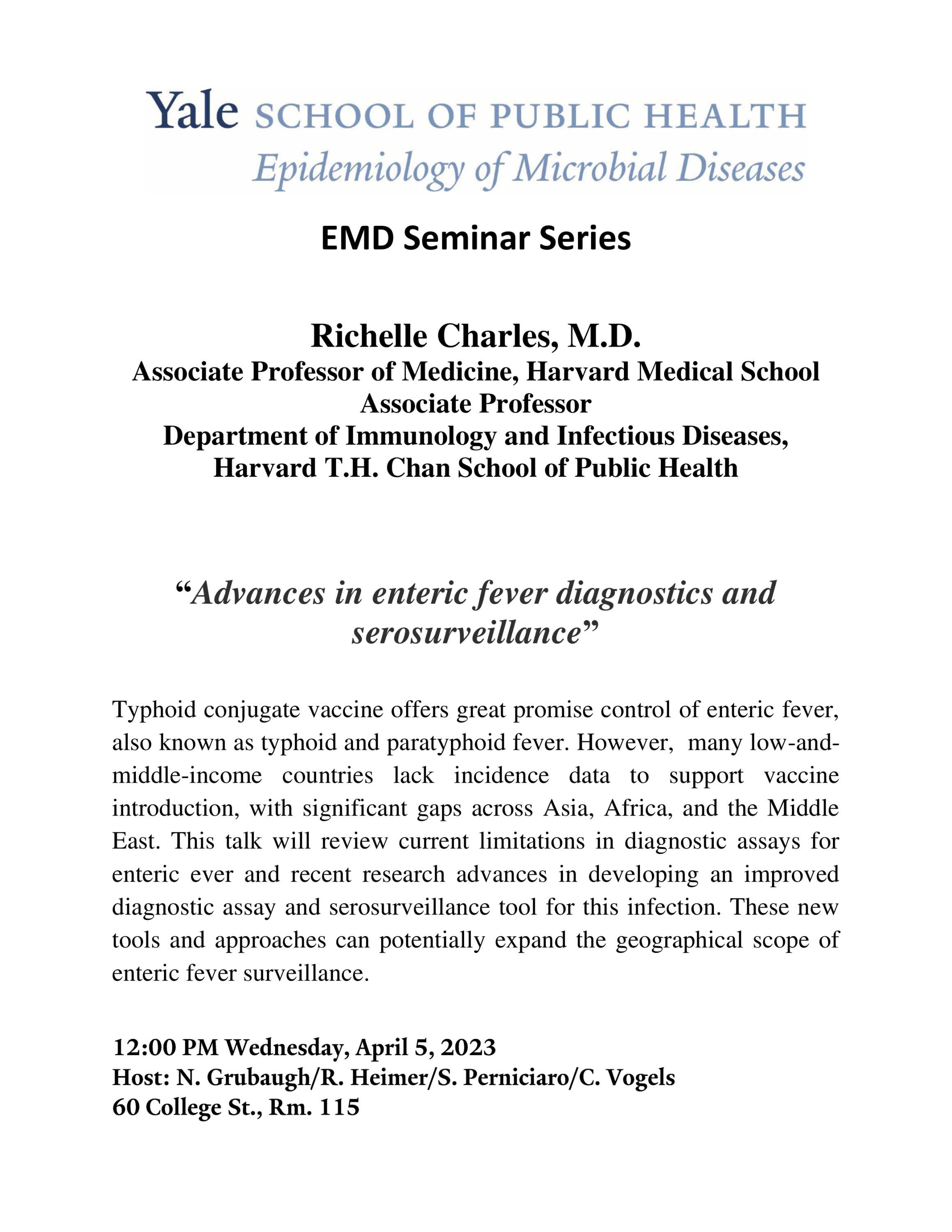 YSPH EMD Seminar: "Advances in enteric fever diagnostics and serosurveillance”