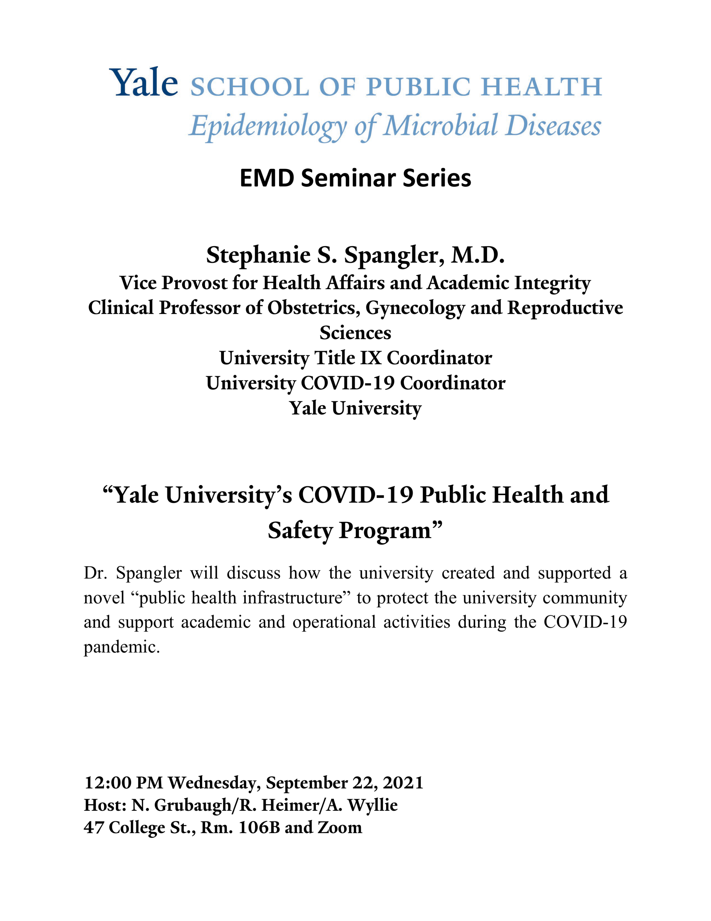 YSPH EMD Seminar Series: “Yale University’s COVID-19 Public Health and Safety Program”